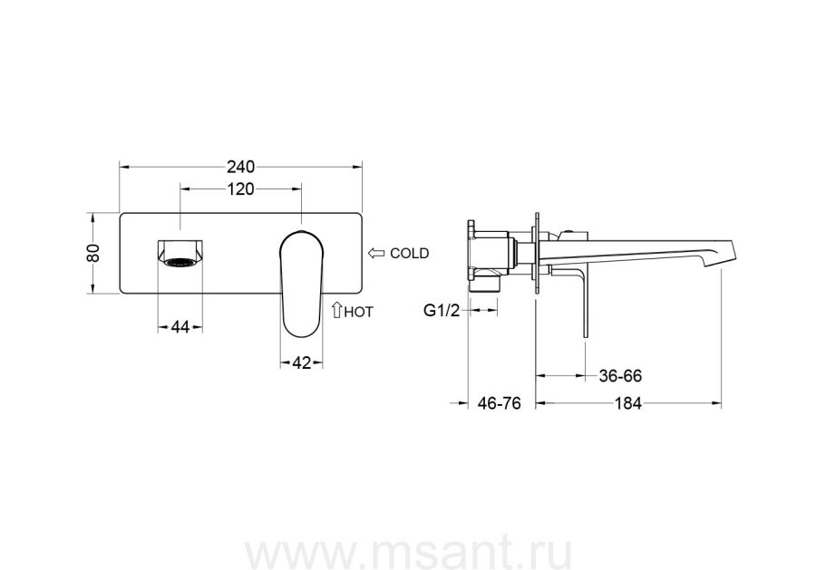 Смеситель для раковины настенный (внешняя и скрытая часть) AQUATEK AQ1213CR ОБЕРОН