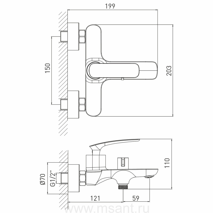 Смеситель для ванны 30k MIXLINE ML21-01 "Elegant"