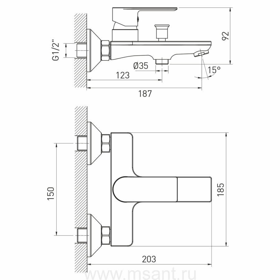 Смеситель для ванны 35k MIXLINE ML26-01 "Life"