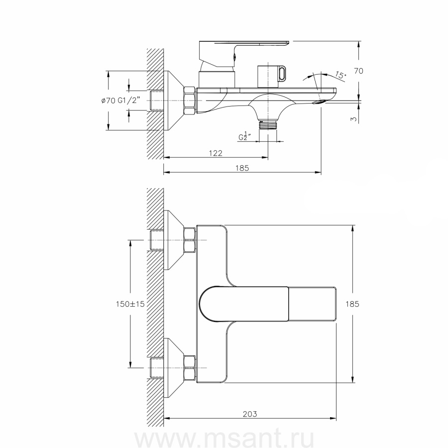 Смеситель для ванны 35k MIXLINE ML33-01 "City White" БЕЛЫЙ/ХРОМ