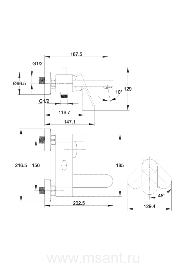 Смеситель для ванны Cersanit ELIO 63045 однорычажный