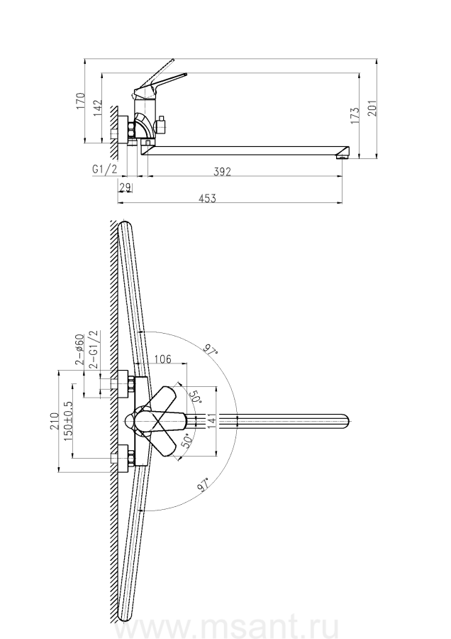 Смеситель для ванны Cersanit FLAVIS 64093 с длинным изливом однорычажный