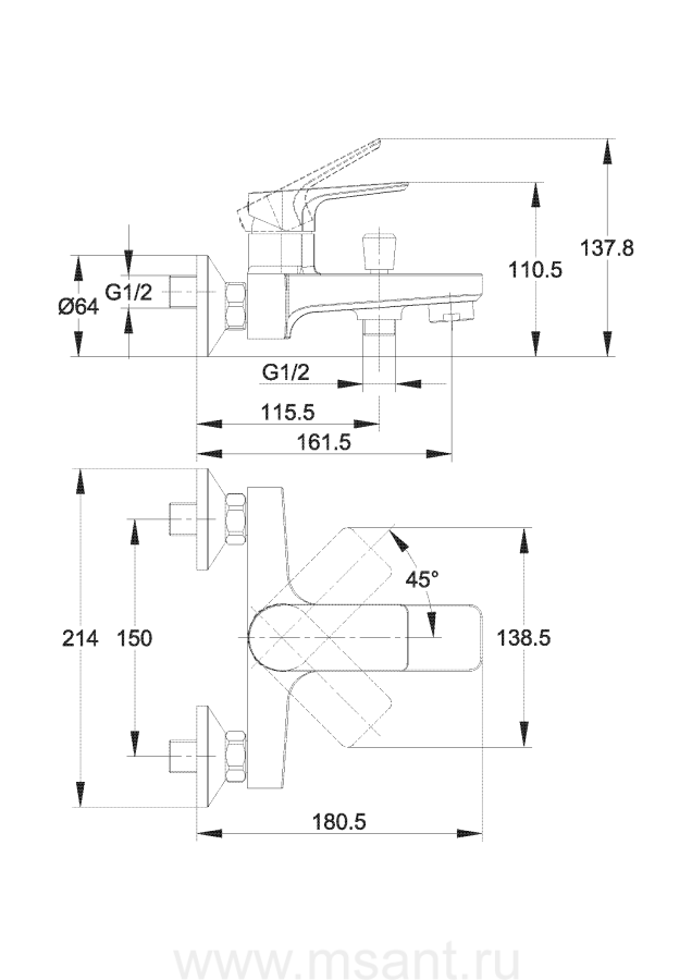Смеситель для ванны Cersanit NATURE 63064 однорычажный