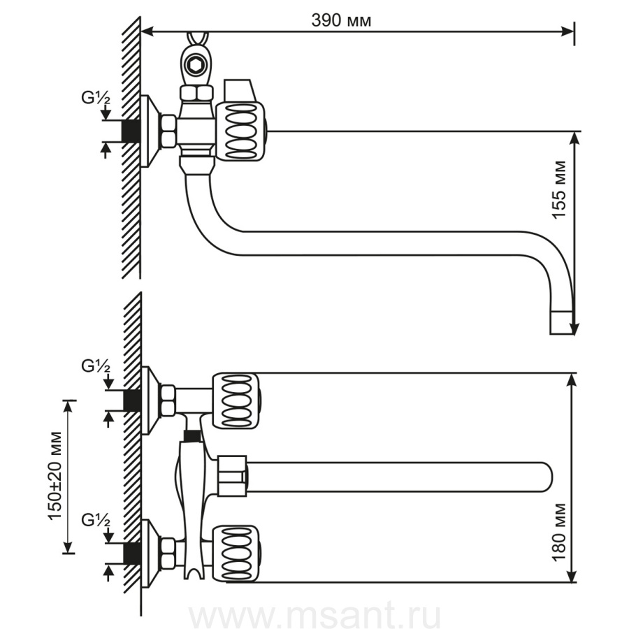 Смеситель для ванны MIXLINE 1/2 кер.MIXLINE ML02-02