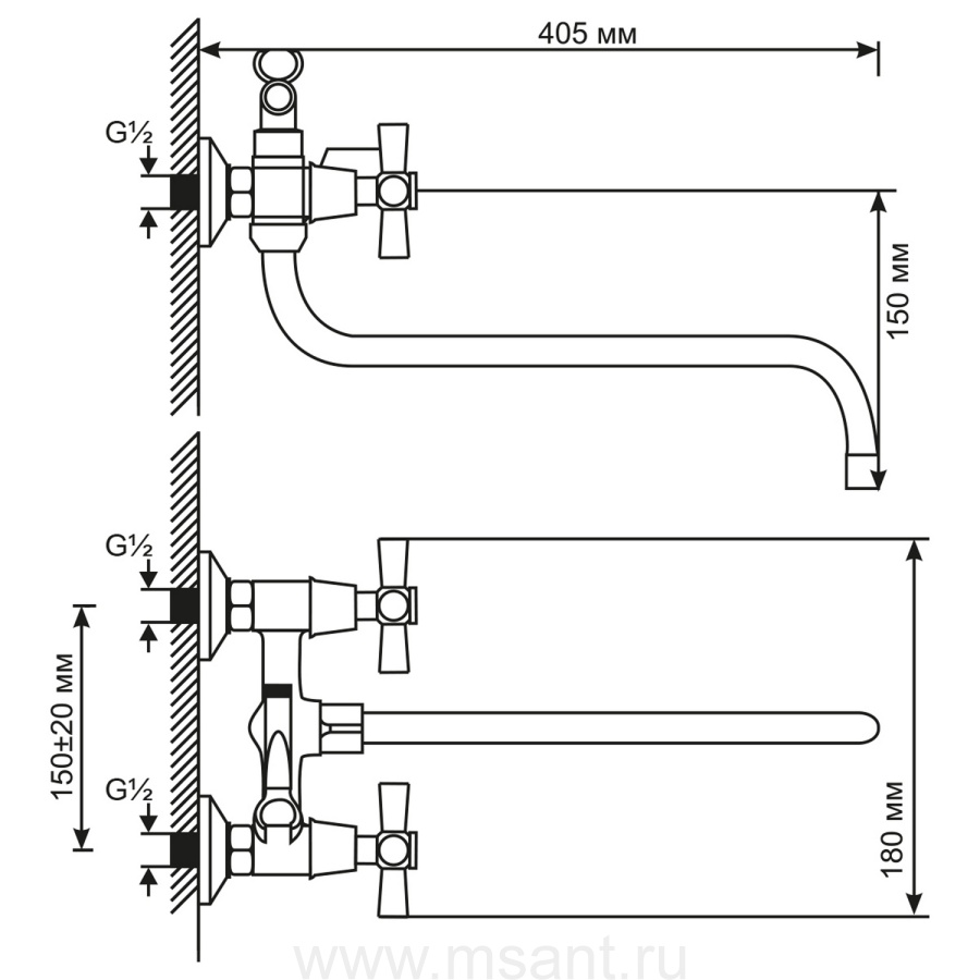 Смеситель для ванны MIXLINE 1/2 кер. MIXLINE ML09-02