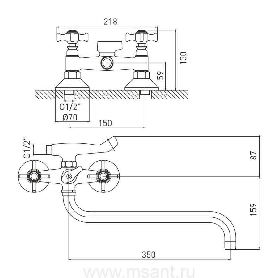 Смеситель для ванны MIXLINE 1/2 кер. MIXLINE ML30-021 "Classic"