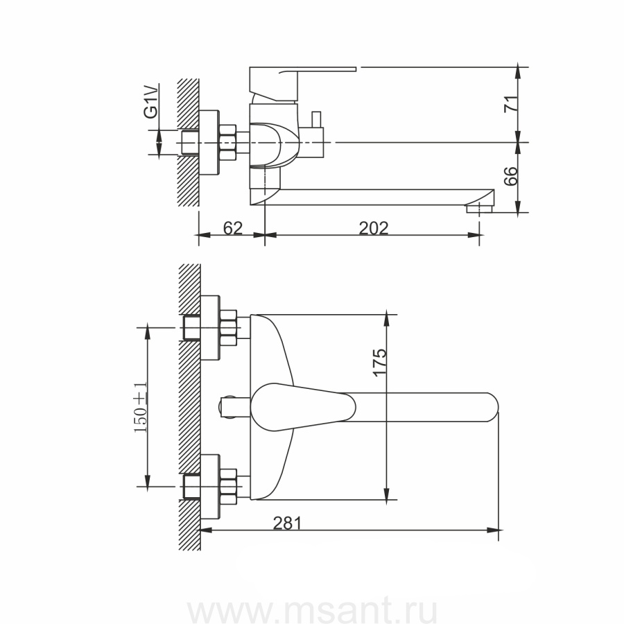 Смеситель для ванны MIXLINE 35k MIXLINE MLSS36-021 "Steel Kit" нерж.