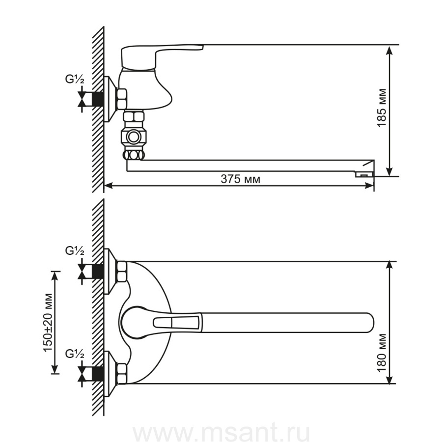 Смеситель для ванны MIXLINE 40k MIXLINE ML06-02