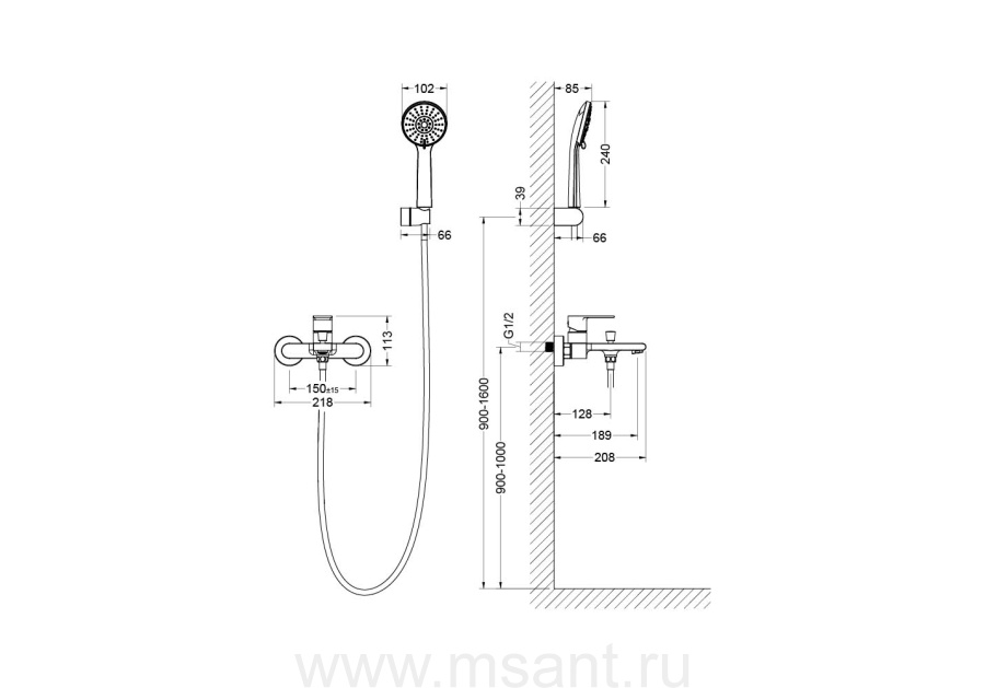 Смеситель для ванны с душевым набором AQUATEK, матовый черный AQ1449MB ЛИРА