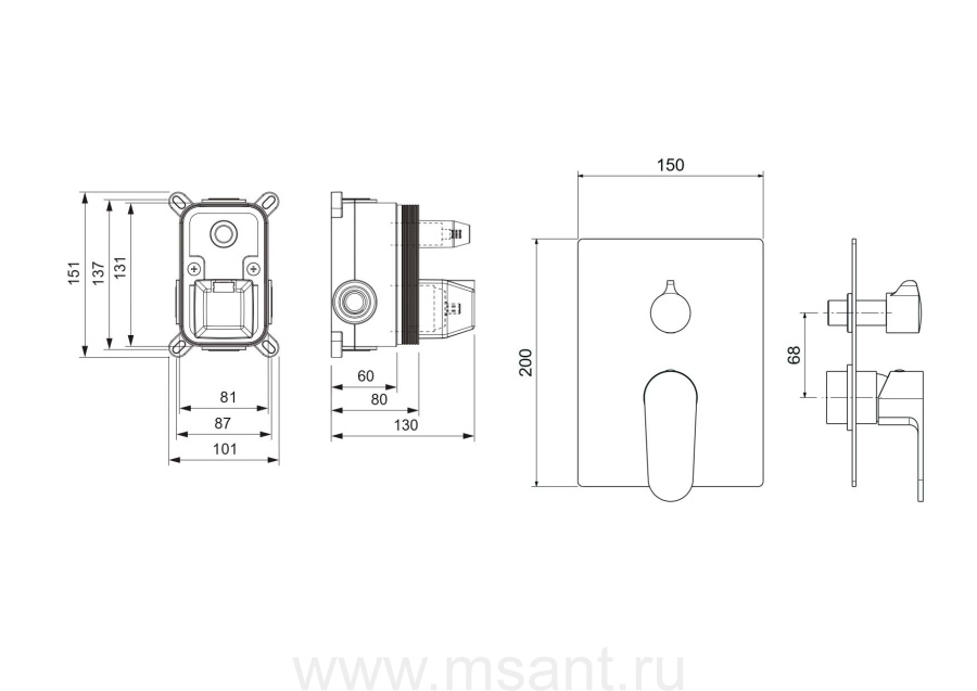 Смеситель для ванны (внешняя и скрытая часть) AQUATEK AQ1246CR ОБЕРОН