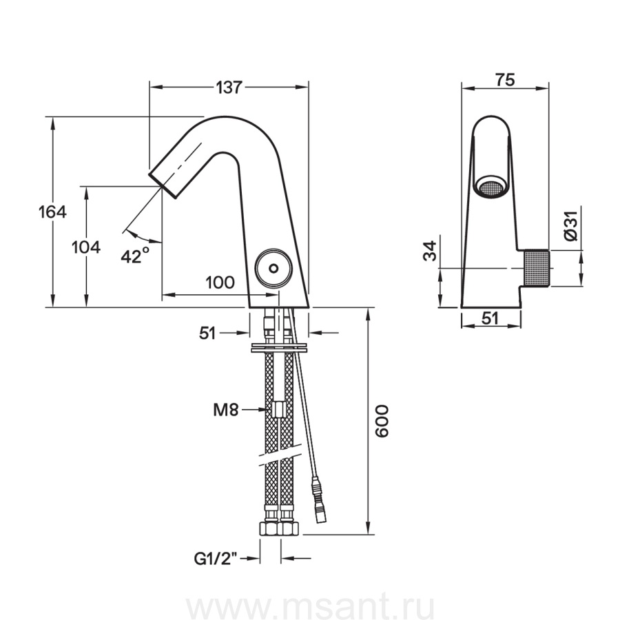 Смеситель Santek Космо для раковины, электронный, 220В/6В, черный матовый, WH5A06019N001