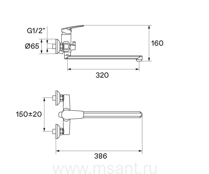 Смеситель Santek Марион для ванны-душа длинный излив, с аксессуарами, хром WH5A12006C001