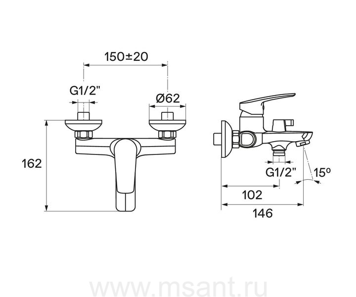 Смеситель Santek Марион для ванны-душа, с аксессуарами, хром WH5A10006C001