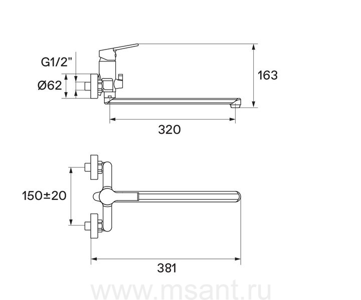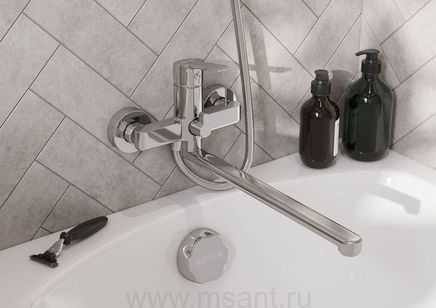 Смеситель Santek Найра для ванны-душа длинный излив, с аксессуарами, хром WH5A12001C001