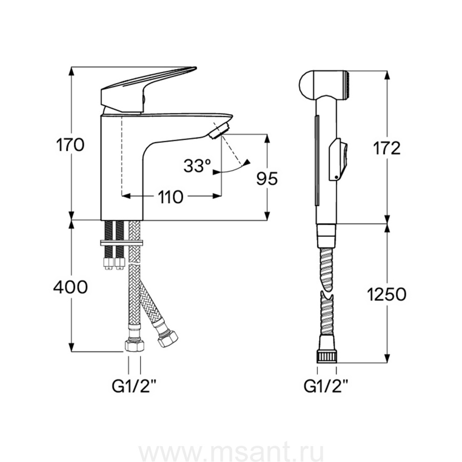 Смеситель Santek Таос для раковины, c гигиеническим душем, WH5A08009C001
