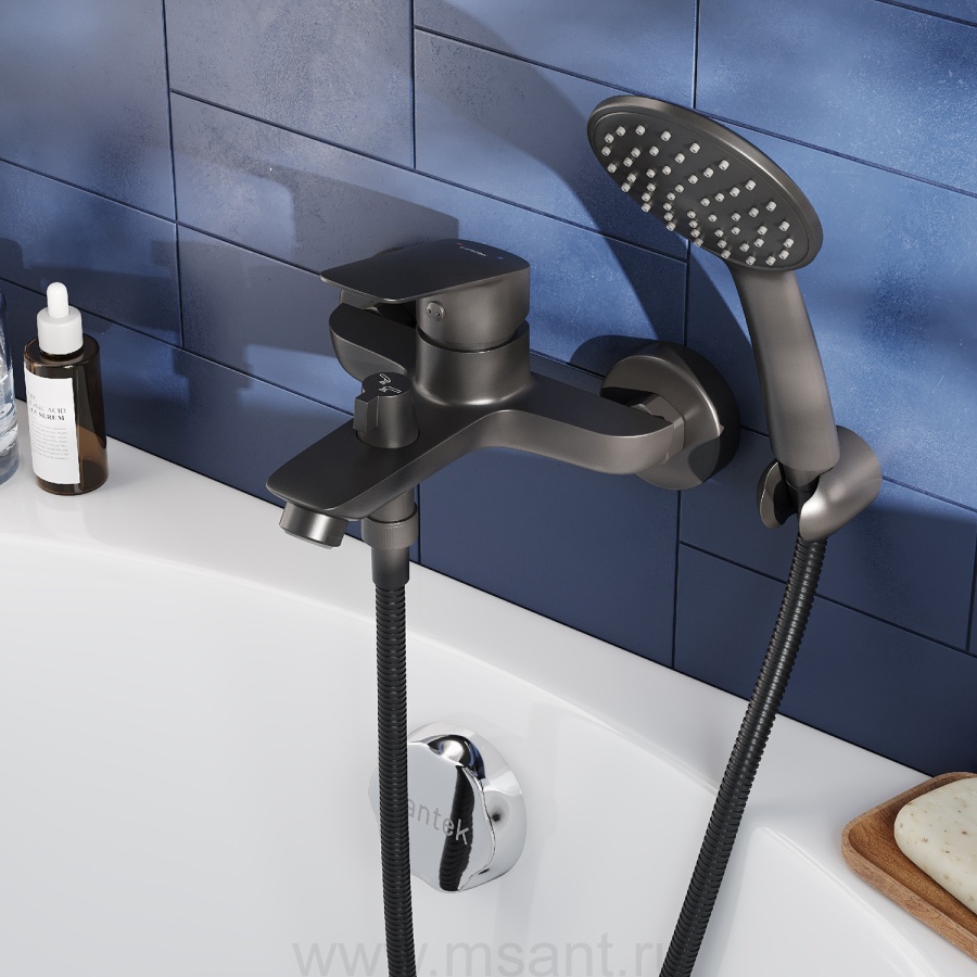 Смеситель Santek Таос для ванны-душа, с аксессуарами, черный, WH5A10009N001