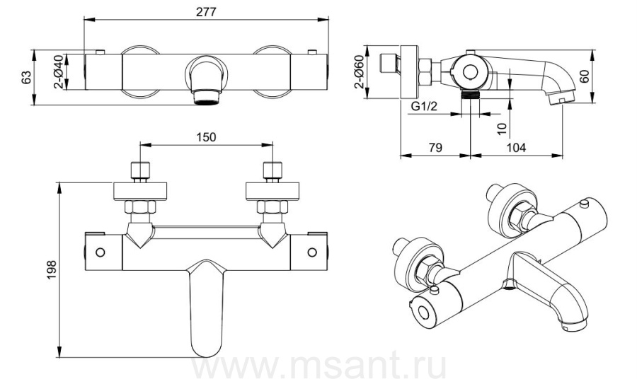 Термостатический смеситель для ванны AQUATEK AQ1043CR
