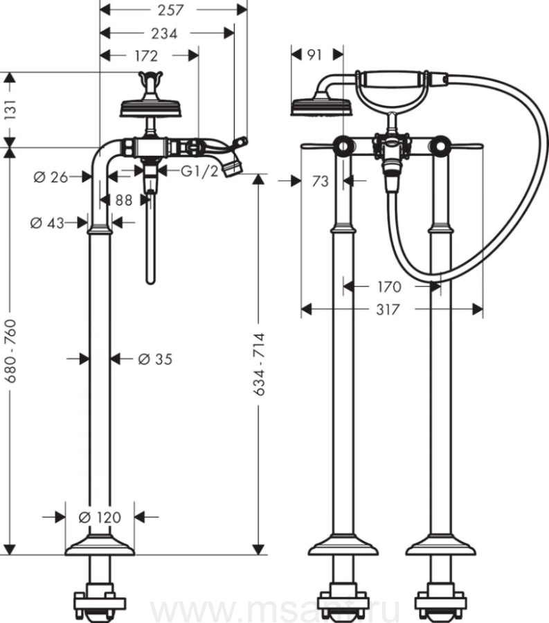 Смеситель Axor Montreux 16553820 напольный, шлифованный никель