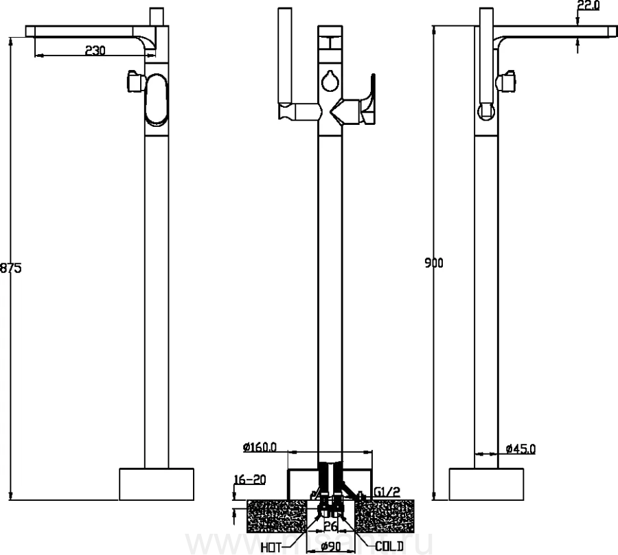 Смеситель Boheme Spectre 459-CR напольный, для ванны, хром
