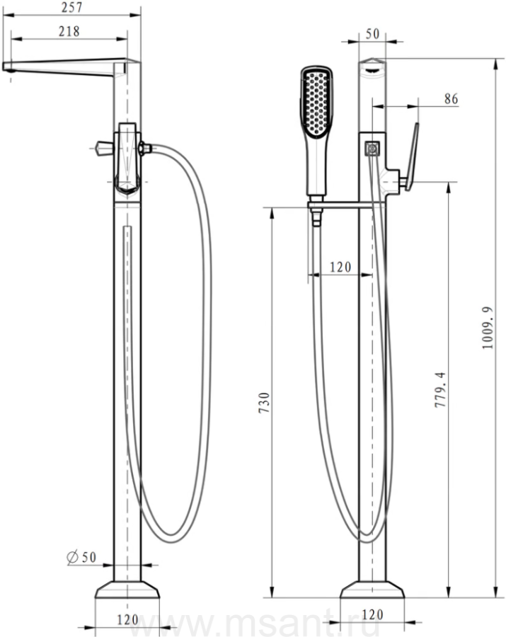 Смеситель Boheme Venturo 389 напольный, для ванны с душем