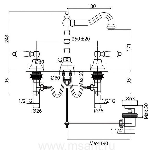 Смеситель Cezares First FIRST-BLS2-03/24-Bi для раковины