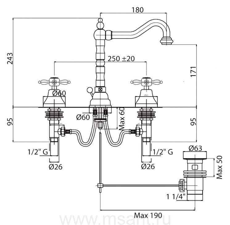 Смеситель Cezares Nostalgia NOSTALGIA-BLS2-02 для раковины