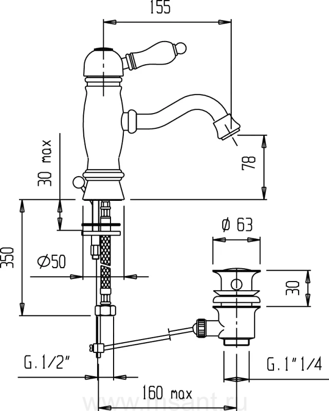 Смеситель для раковины Cezares Venezia VENEZIA-LSM1-03/24-Bi