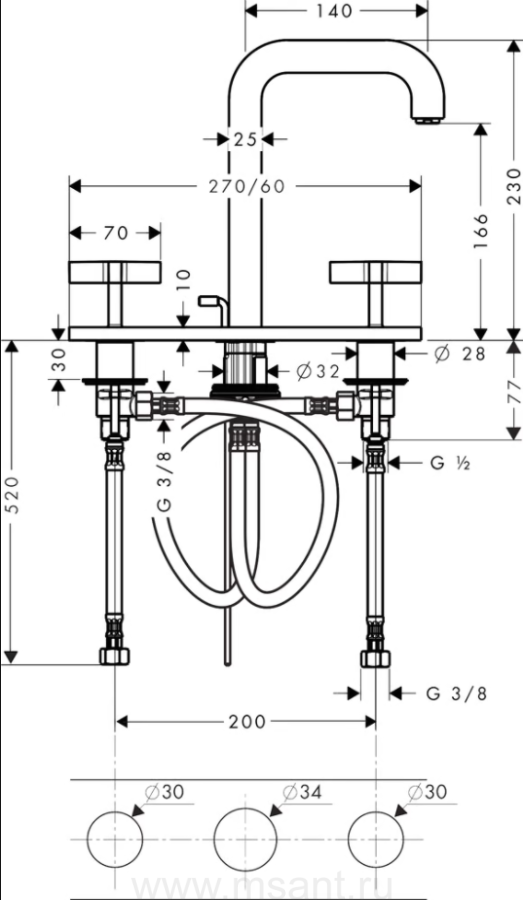 Смеситель Axor Citterio 39134800 для раковины, сталь