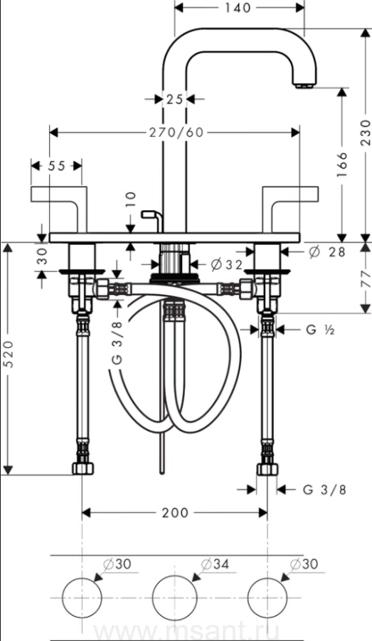 Смеситель Axor Citterio 39136800 для раковины. сталь