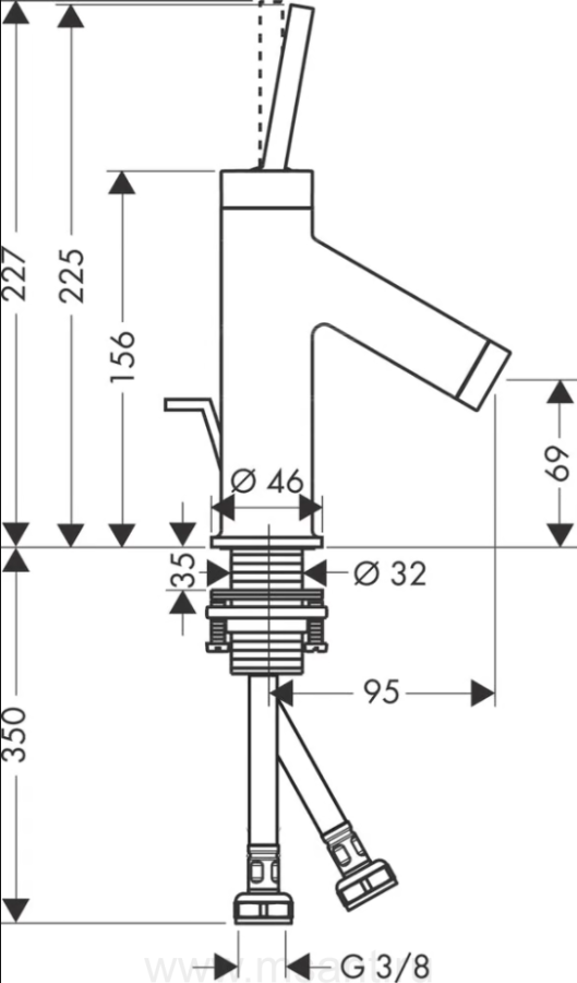 Смеситель Axor Starck 10116800 для раковины, сталь