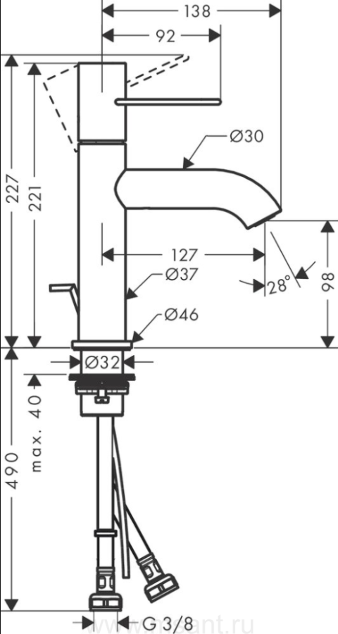 Смеситель Axor Uno 38023000 для раковины, хром