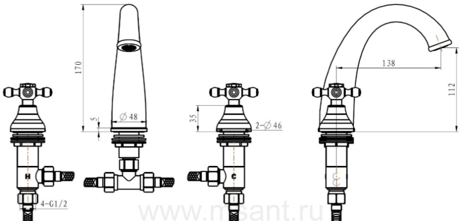 Смеситель Boheme Tradizionale Oro 297 для раковины