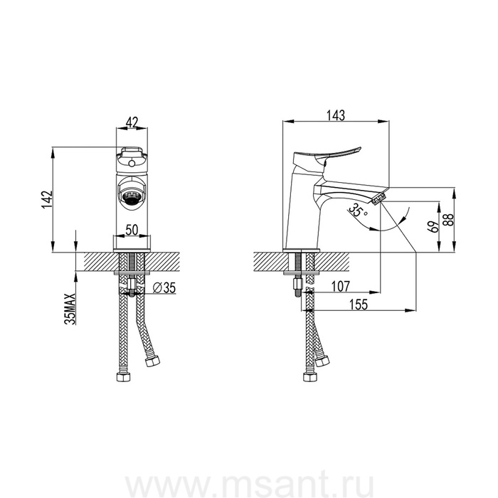 Смеситель для умывальника, Amplex, Milardo, AMPSB00M01