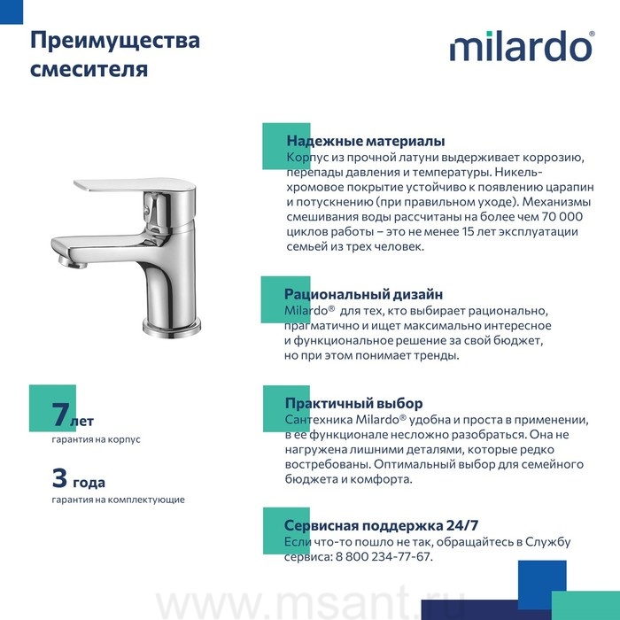 Смеситель для умывальника, Helic, Milardo, HELSB00M01