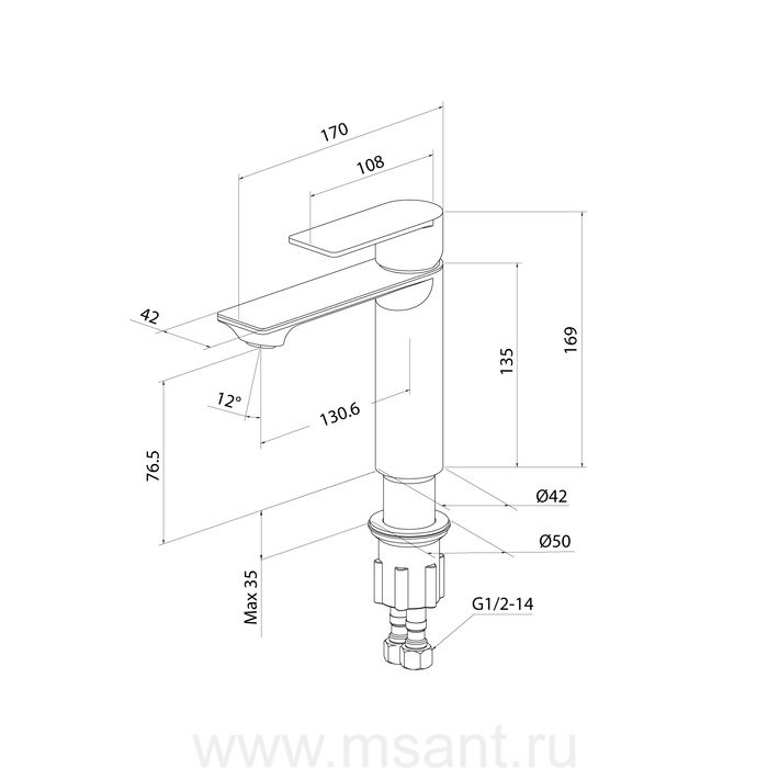 Смеситель для умывальника, сатин, Maze, Milardo, MAZBN00M01