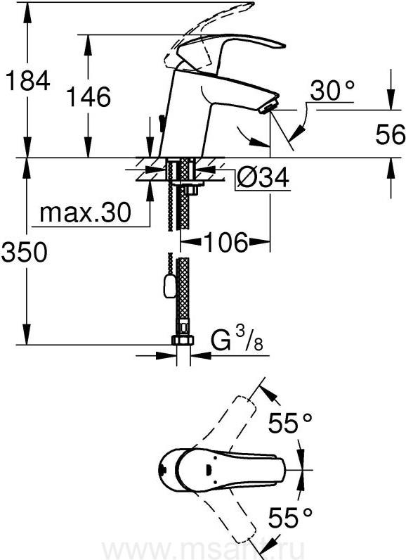 Смеситель Grohe Eurosmart New 33188002 для раковины