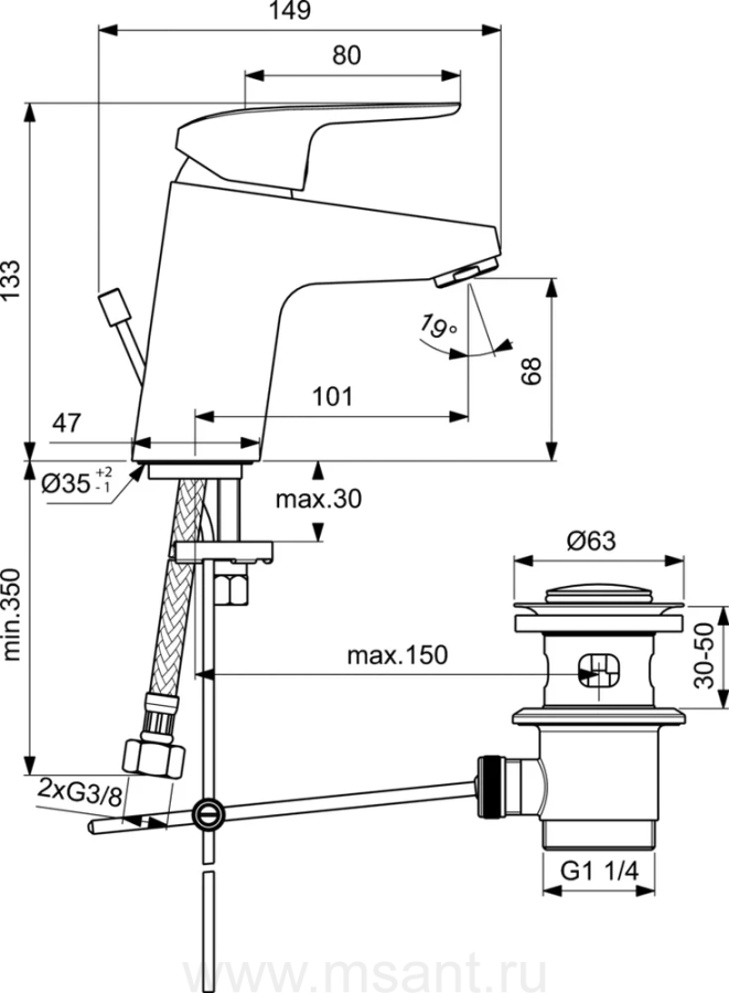 Смеситель для раковины Ideal Standard Ceraflex B1708AA