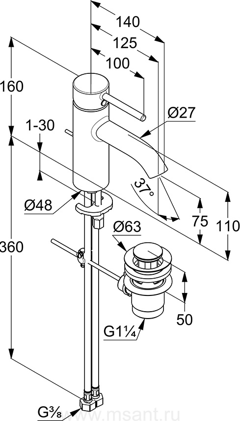 Смеситель Kludi Bozz 382630576 для раковины