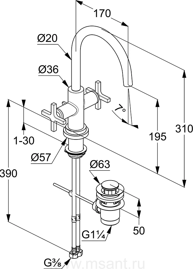 Смеситель для раковины Kludi Nova Fonte Classic 201180520