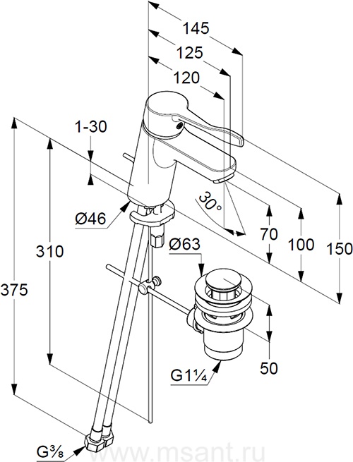 Смеситель Kludi Pure&Easy Care 372840565 для раковины