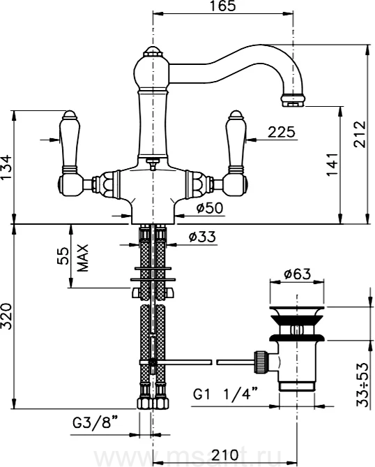 Смеситель для раковины Nicolazzi Tradizionale 1432BZ78