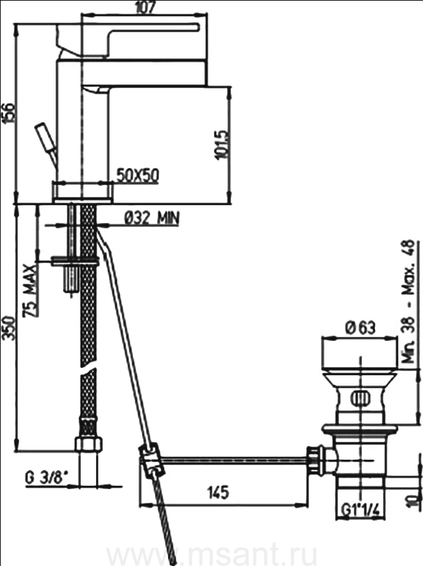 Смеситель Paini Dax 84CR211WFRKM для раковины
