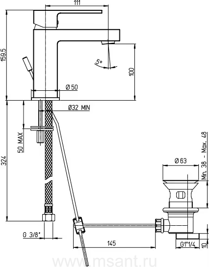 Смеситель Paini Dax-R 84CR211RKM для раковины