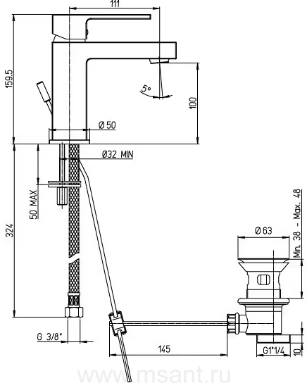 Смеситель Paini Dax-R 84PZ211R для раковины