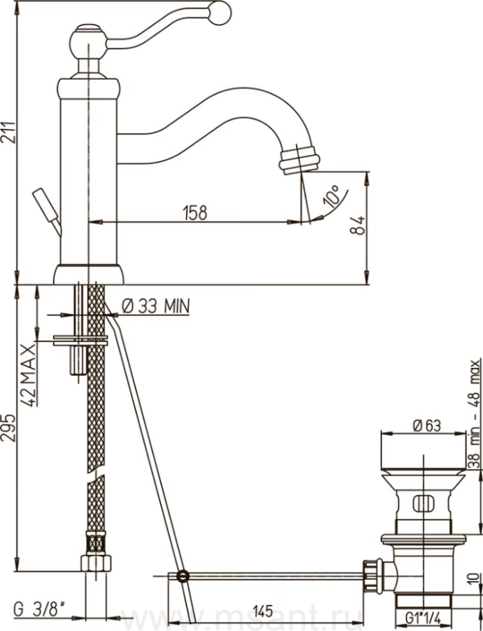 Смеситель Paini Duomo 88CR211KM для раковины