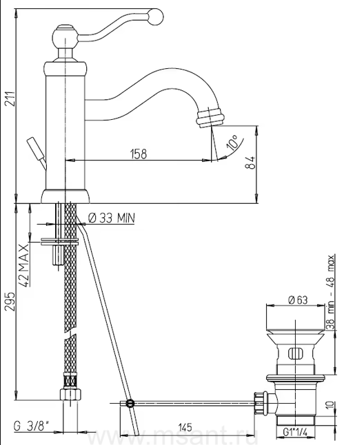 Смеситель Paini Duomo 88OP211 для раковины