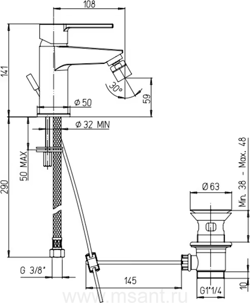 Смеситель Paini Le Mans 90CR3062SKM для биде