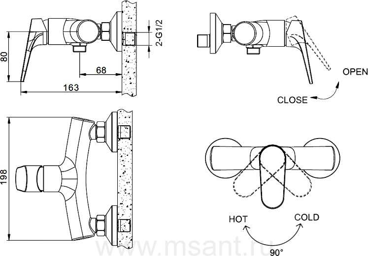 Смеситель Bravat Eler F9191238CP-01 для душа