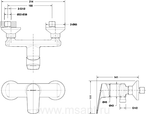 Смеситель Bravat Rhein F9429564CP-01-ENG для душа