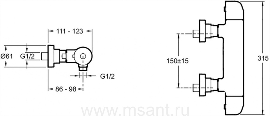 Термостат Jacob Delafon Villette E23720-CP для душа